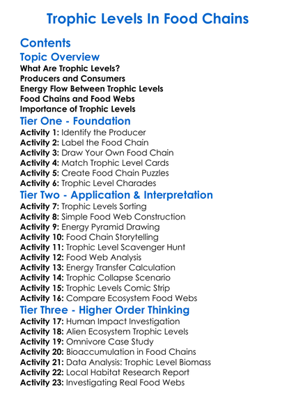 Trophic Levels In Food Chains Worksheet Activity Booklet