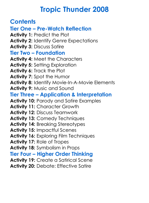 Tropic Thunder 2008 Worksheet Activity Booklet