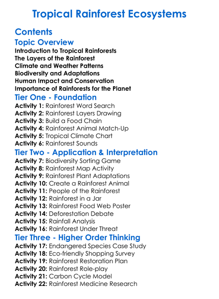 Tropical Rainforest Ecosystems Worksheet Activity Booklet