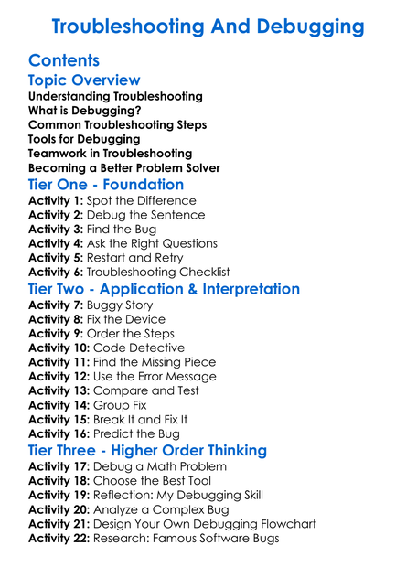 Troubleshooting And Debugging Worksheet Activity Booklet