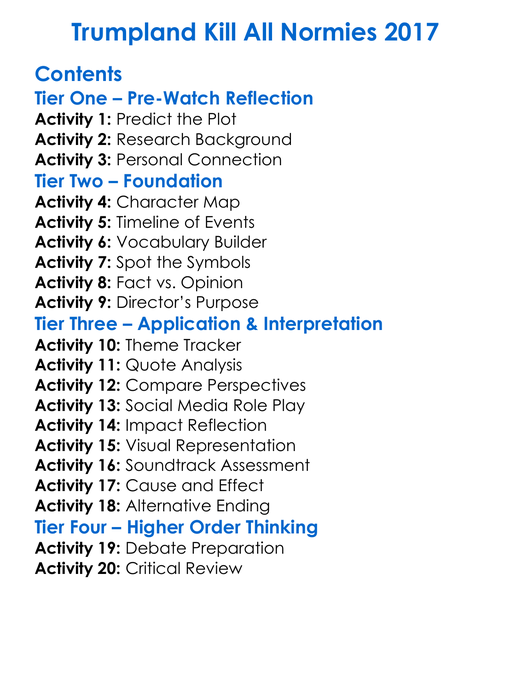 Trumpland Kill All Normies 2017 Worksheet Activity Booklet