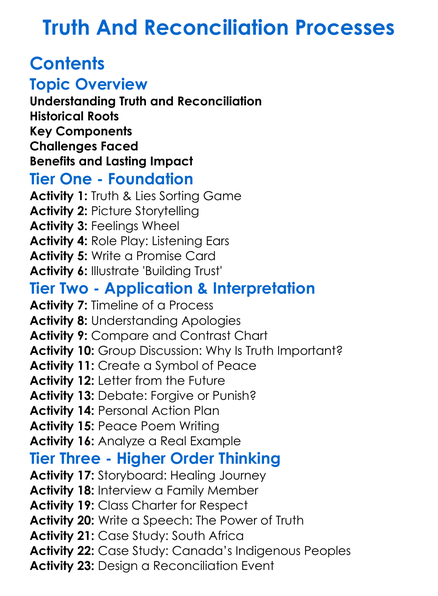 Truth And Reconciliation Processes Worksheet Activity Booklet