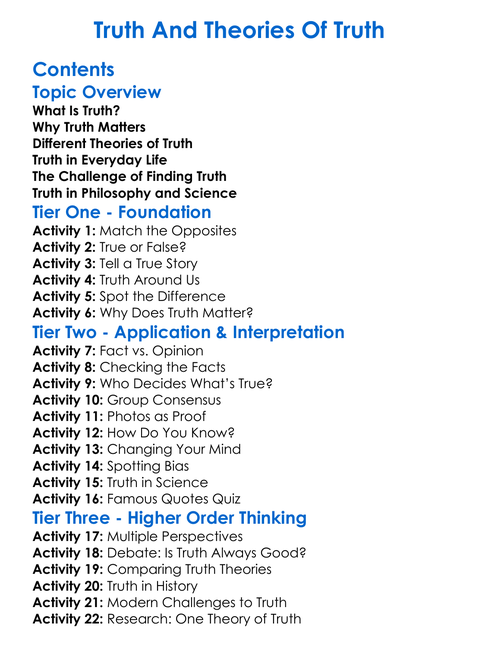 Truth And Theories Of Truth Worksheet Activity Booklet