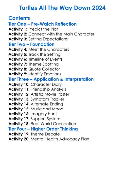 Turtles All The Way Down 2024 Worksheet Activity Booklet
