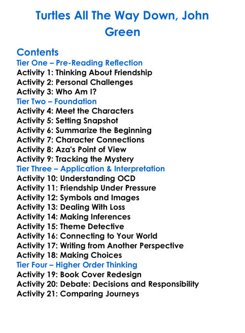 Turtles All The Way Down John Green Worksheet Activity Booklet