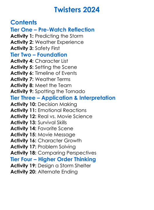 Twisters 2024 Worksheet Activity Booklet