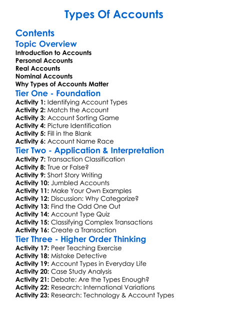 Types Of Accounts Worksheet Activity Booklet