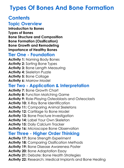 Types Of Bones And Bone Formation Worksheet Activity Booklet
