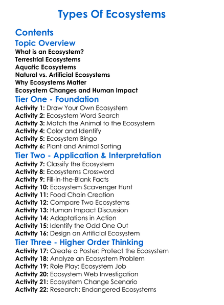 Types Of Ecosystems Worksheet Activity Booklet