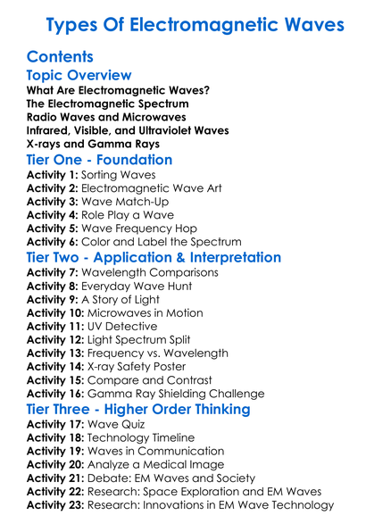Types Of Electromagnetic Waves Worksheet Activity Booklet
