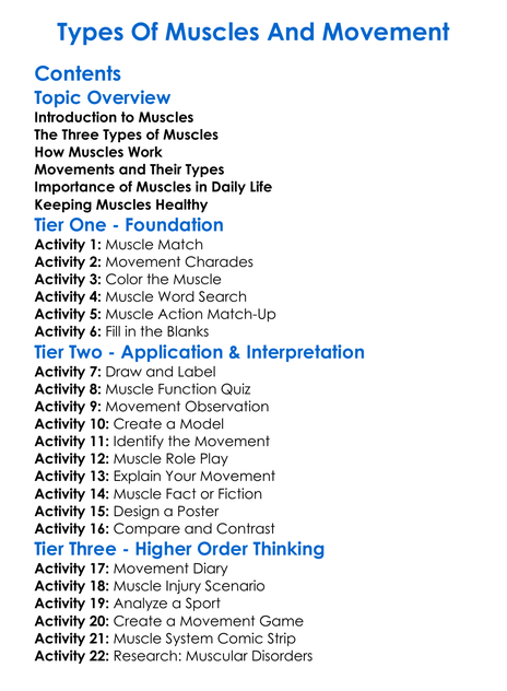 Types Of Muscles And Movement Worksheet Activity Booklet