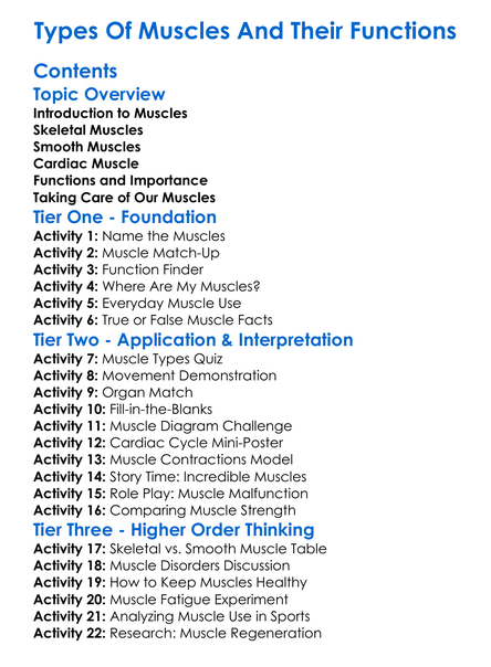 Types Of Muscles And Their Functions Worksheet Activity Booklet