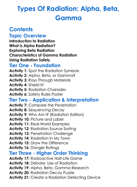 Types Of Radiation Alpha Beta Gamma Worksheet Activity Booklet