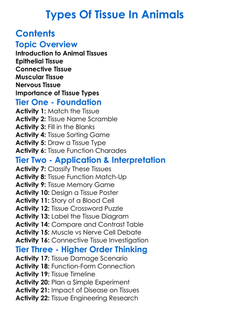 Types Of Tissue In Animals Worksheet Activity Booklet