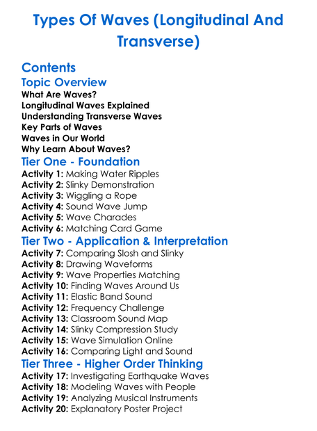 Types Of Waves Longitudinal And Transverse Worksheet Activity Booklet