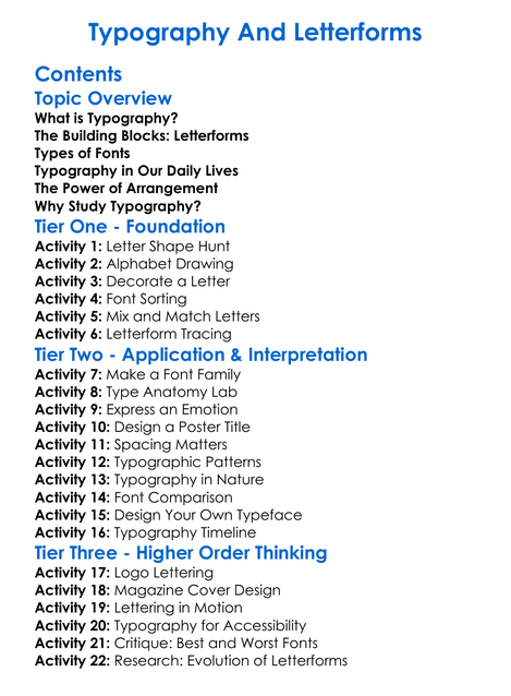 Typography And Letterforms Worksheet Activity Booklet