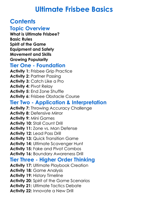 Ultimate Frisbee Basics Worksheet Activity Booklet