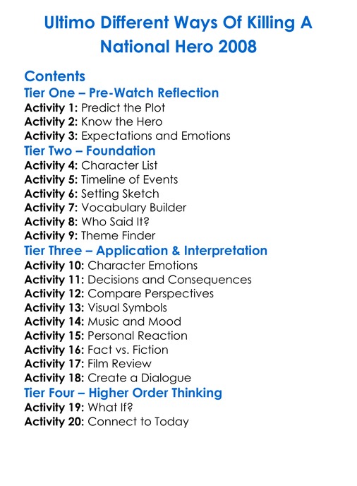 Ultimo Different Ways Of Killing A National Hero 2008 Worksheet Activity Booklet