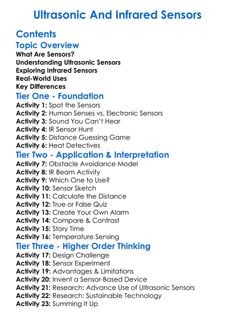 Ultrasonic And Infrared Sensors Worksheet Activity Booklet