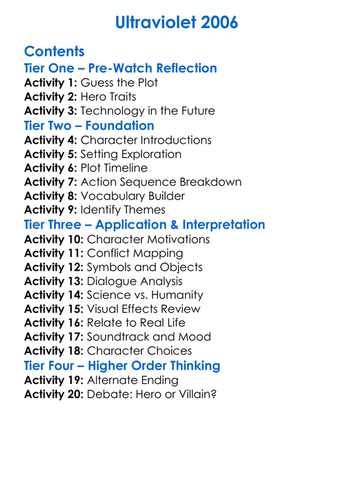 Ultraviolet 2006 Worksheet Activity Booklet