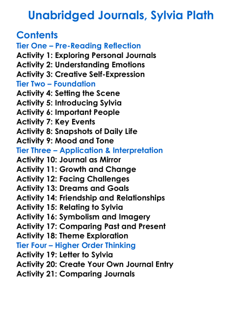 Unabridged Journals Sylvia Plath Worksheet Activity Booklet