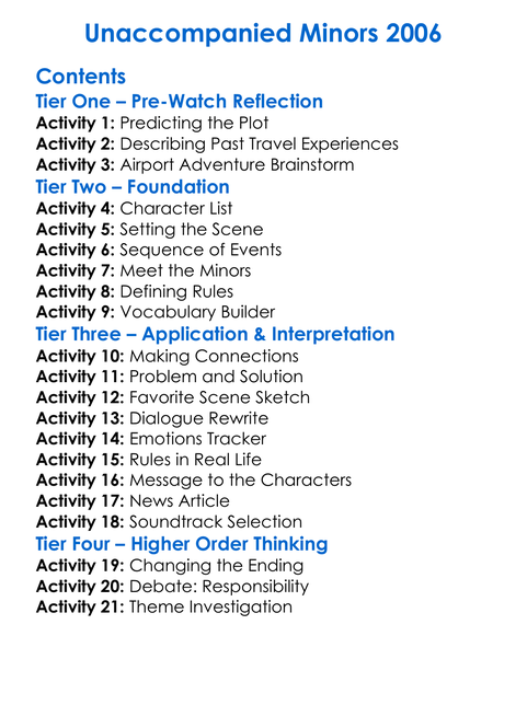 Unaccompanied Minors 2006 Worksheet Activity Booklet
