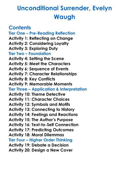 Unconditional Surrender Evelyn Waugh Worksheet Activity Booklet