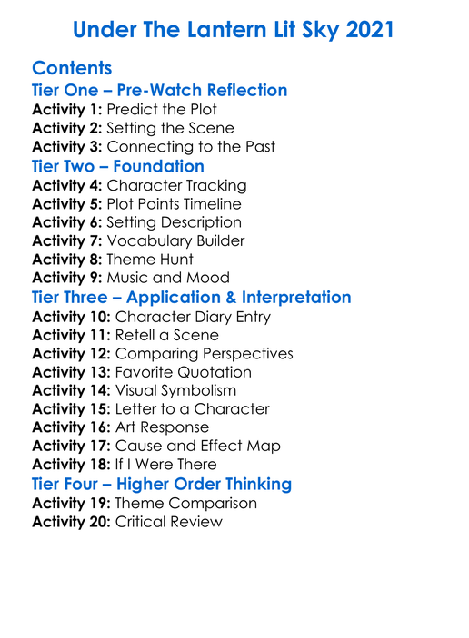Under The Lantern Lit Sky 2021 Worksheet Activity Booklet