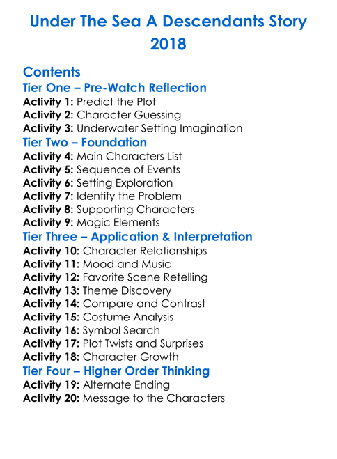 Under The Sea A Descendants Story 2018 Worksheet Activity Booklet