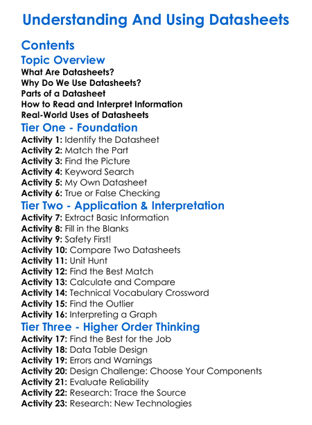 Understanding And Using Datasheets Worksheet Activity Booklet