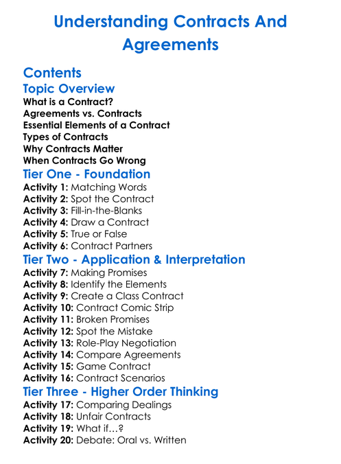 Understanding Contracts And Agreements Worksheet Activity Booklet