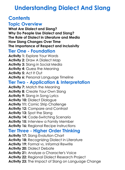Understanding Dialect And Slang Worksheet Activity Booklet
