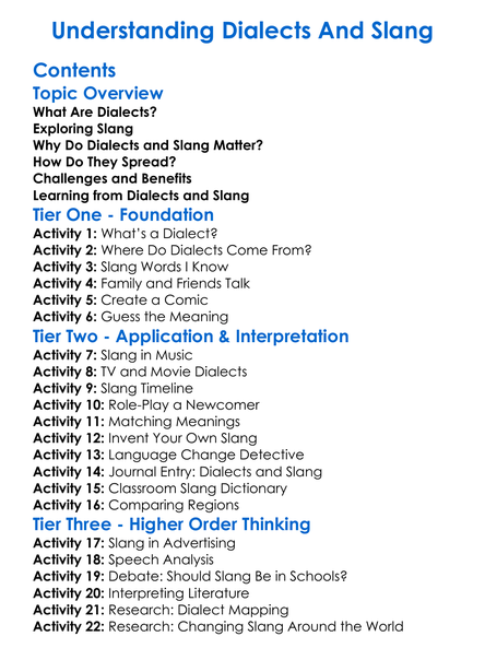 Understanding Dialects And Slang Worksheet Activity Booklet