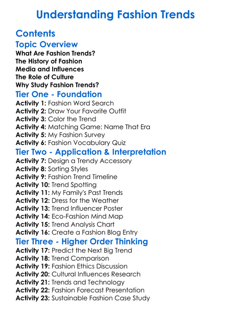 Understanding Fashion Trends Worksheet Activity Booklet