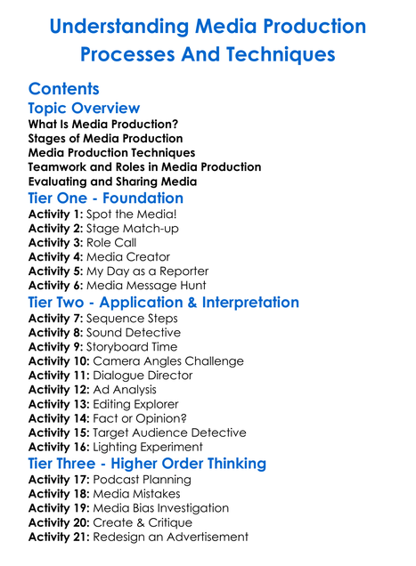 Understanding Media Production Processes And Techniques Worksheet Activity Booklet