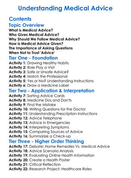 Understanding Medical Advice Worksheet Activity Booklet