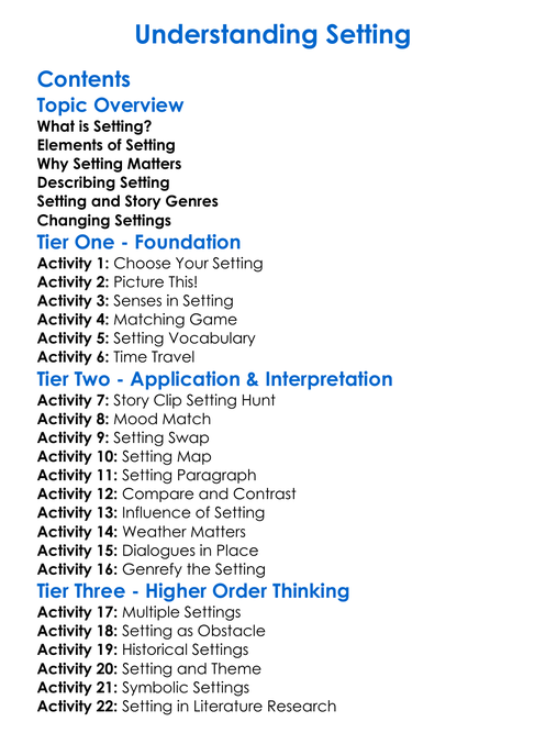 Understanding Setting Worksheet Activity Booklet