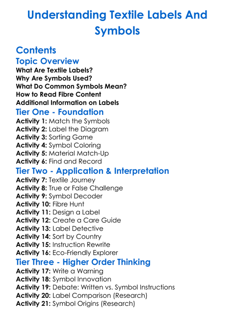 Understanding Textile Labels And Symbols Worksheet Activity Booklet