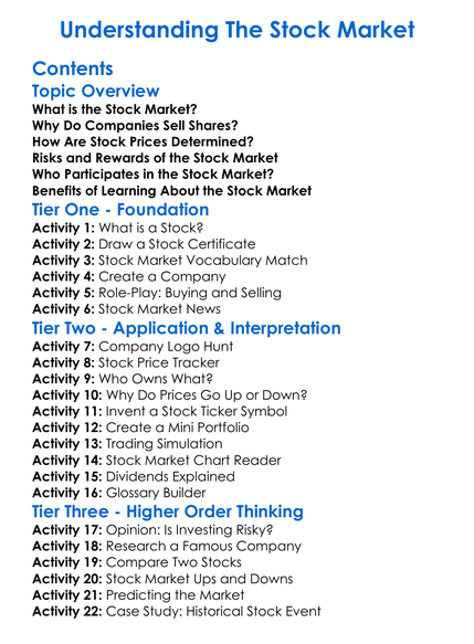 Understanding The Stock Market Worksheet Activity Booklet