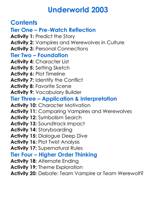 Underworld 2003 Worksheet Activity Booklet
