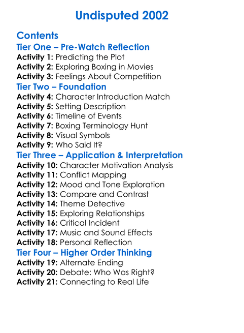 Undisputed 2002 Worksheet Activity Booklet
