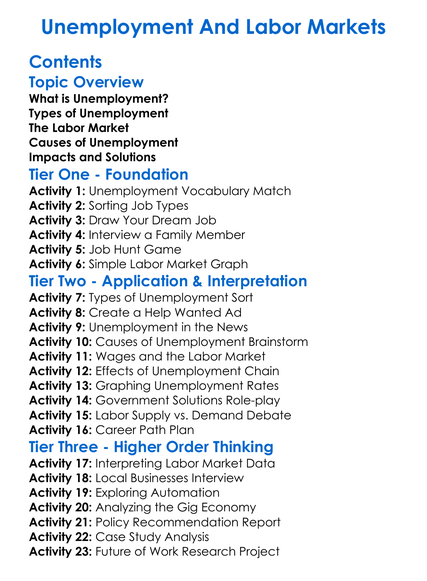 Unemployment And Labor Markets Worksheet Activity Booklet