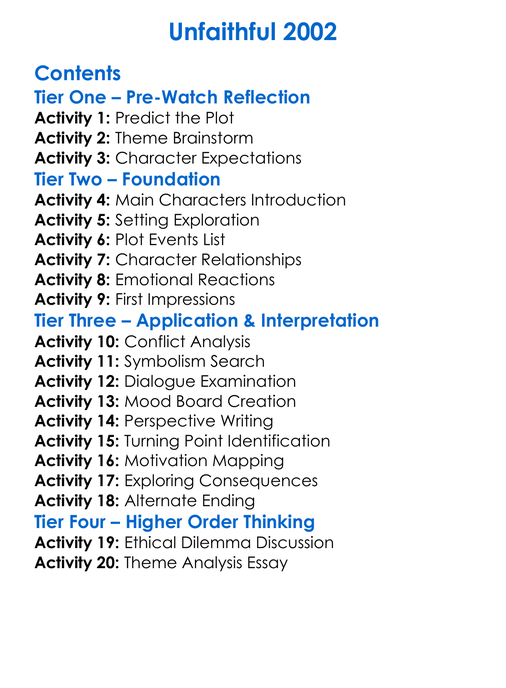 Unfaithful 2002 Worksheet Activity Booklet