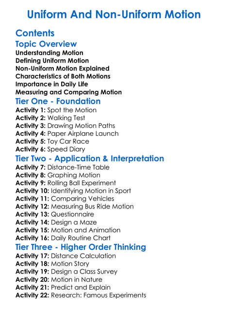 Uniform And Non-Uniform Motion Worksheet Activity Booklet