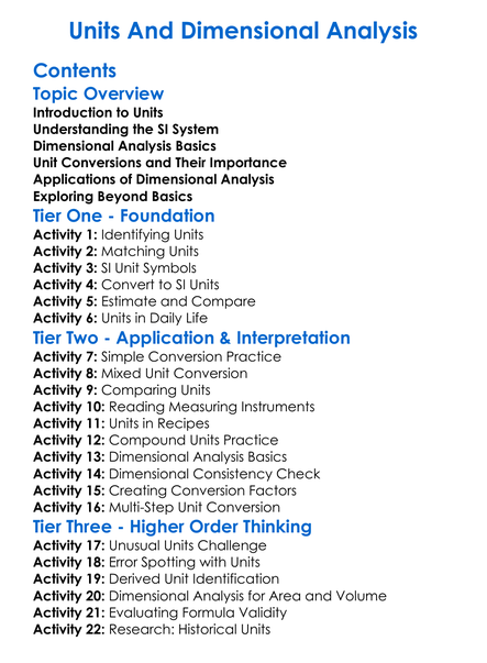 Units And Dimensional Analysis Worksheet Activity Booklet