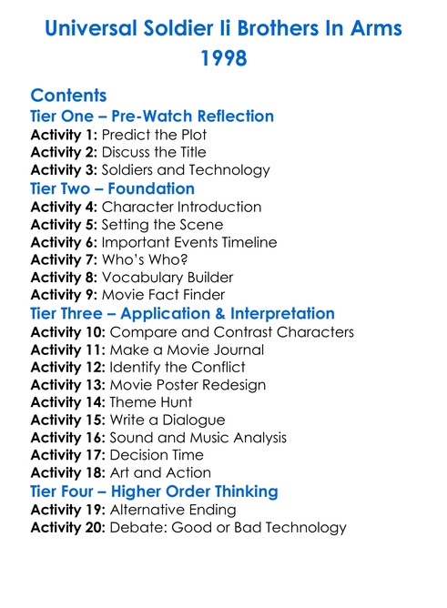 Universal Soldier Ii Brothers In Arms 1998 Worksheet Activity Booklet