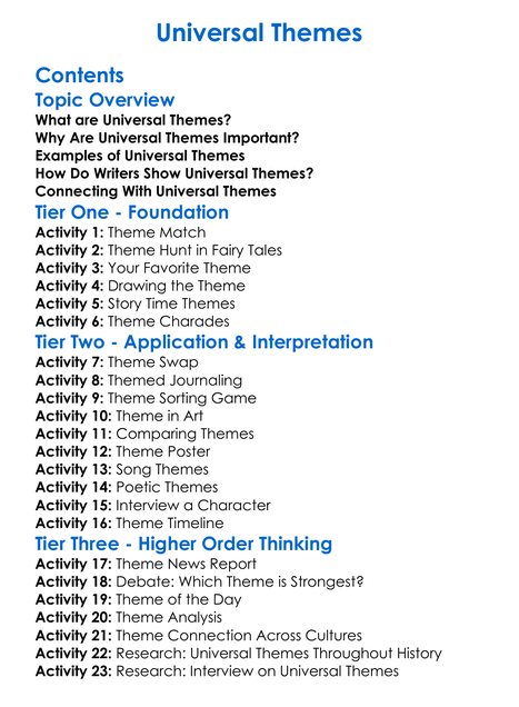 Universal Themes Worksheet Activity Booklet