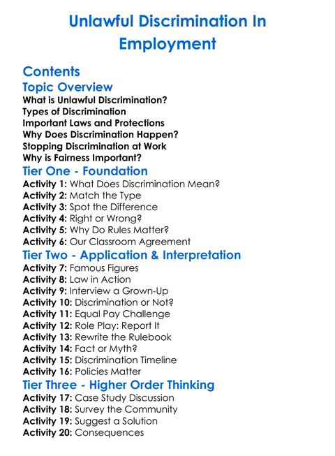 Unlawful Discrimination In Employment Worksheet Activity Booklet