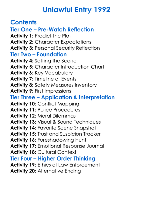 Unlawful Entry 1992 Worksheet Activity Booklet