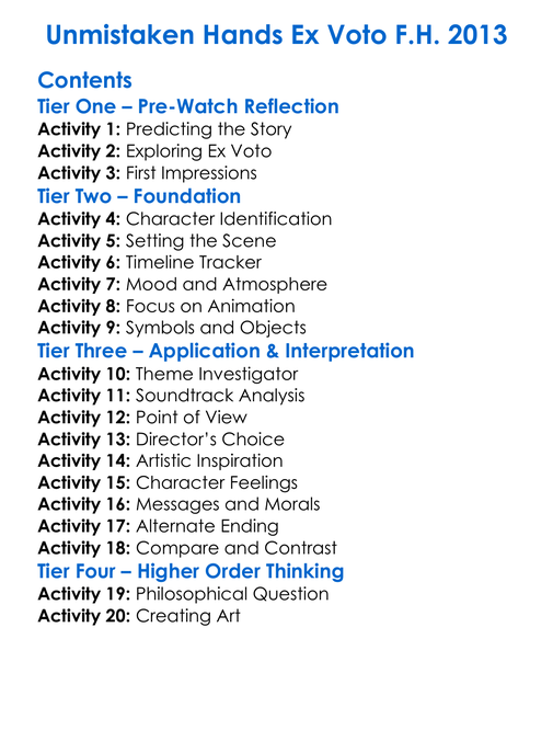 Unmistaken Hands Ex Voto Fh 2013 Worksheet Activity Booklet